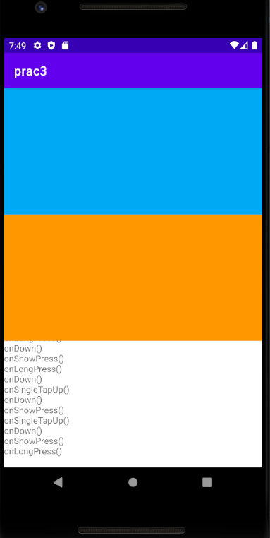 두번째 뷰 객체를 터치하면 자동으로 onTouch 메서드가 호출됩니다. 이 메서드에서는 detector 객체의 onTouchEvent메스드를 호출하여 GestureDector 객체에 정의된 메서드를 호출하게됩니다.